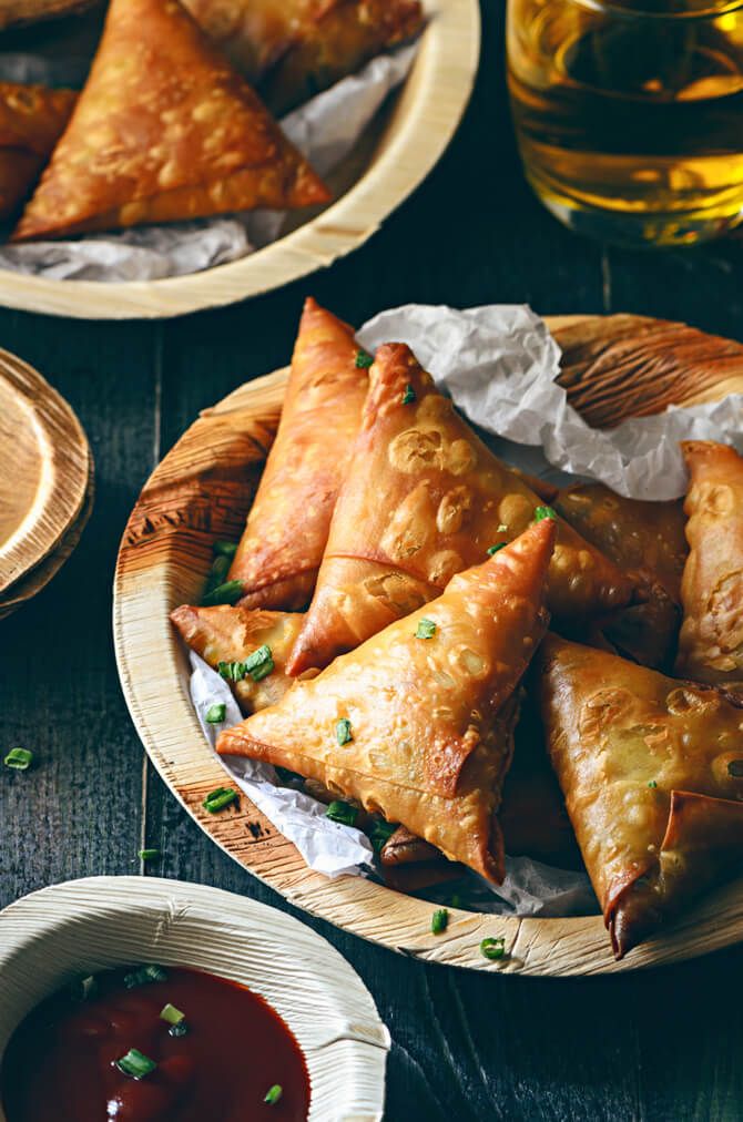 A meaty twist to the classic samosa, filled with flavorful chicken stuffing.